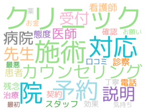 町の病院や美容関連のクリニックを含む医療業は、悪評・クレームが4番目に多い業種となりました。投稿内容を見ると、事前説明や対応姿勢、契約・料金に関する不満が目立ちました。具体的には、診察やカウンセリングで要望が十分に聞かれない、医師や受付の対応にばらつきがあるといった指摘が多く発生していました。また、美容・脱毛クリニックへの不満の特徴としては、施術内容や効果、追加費用についての説明不足、後出しの条件提示への不信感が多く見受けられました。また、勧誘の強さや広告表現と実態の乖離、患者の心理面への配慮を欠いた言動を問題視する声もあり、医療サービスに求められる透明性と信頼性が患者側で強く意識されていることがうかがえます。